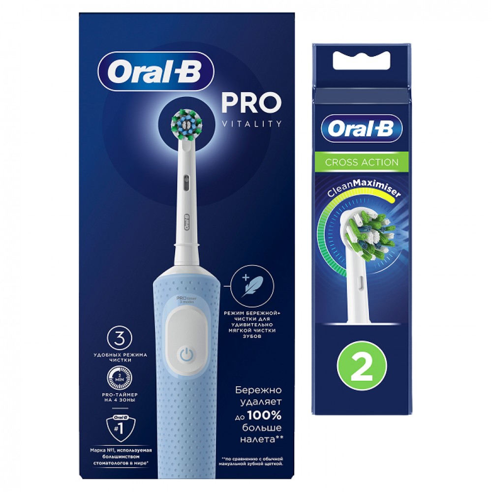 | Электрическая зубная щётка Oral-B Vitality Pro + Насадка для эффективной чистки Oral-B CrossAction (2 шт) | Электрическая зубная щётка Oral-B Vitality Pro + Женская бритва для ухода в зоне бикини Gillette Venus Satin Care | Электрическая зубная щётка Oral-B Vitality Pro + Женская бритва Gillette Venus Comfortglide Miami | Электрическая зубная щетка Vitality Pro голубая, насадка Cross Action 2 шт, насадка Sensitive Plus, колпачок на насадку | Оригинальная электрическая зубная щётка Oral-B Vitality Pro для бережной чистки, Лиловая, 1 шт. | Набор оригинальных электрических зубных щеток Oral-B Vitality Pro, 2 щётки, Чёрная и Лиловая, 2 насадки | Оригинальная электрическая зубная щётка Oral-B Vitality Pro для бережной чистки, Чёрная, 1 шт. | Электрическая зубная щетка Oral-B Vitality Pro Lilac c дополнительной насадкой Sensitive Clean (1 шт) | Электрическая зубная щётка Oral-B Vitality Pro + Женская бритва Gillette Venus Snap | |